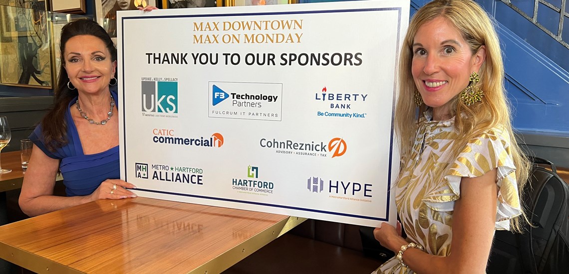UKS was a leading sponsor of the first Max Hospitality’s Max on Monday event in Hartford on June 24th. Close to 150 local business leaders attended, and we were excited to partner with the Max Hospitality Group and support such a successful event! UKS’ Jennifer DiBella and AnnMarie Harding of Max Hospitality Massachusetts pictured in photo.