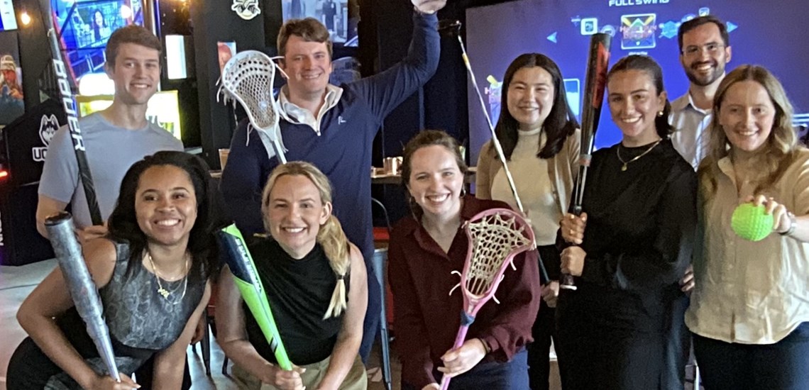 Updike, Kelly & Spellacy Associate Attorneys Jeff Bausch, Stefan Sjoberg, Paige Owens, Elizabeth Fabbri, and Kaydeen Maitland welcomed summer associates Kira Burnham, Felicity Wang, Sofia Rodriguez, and Stephen Pendergast to UKS with a night out at the Clubhouse on Main in Glastonbury.